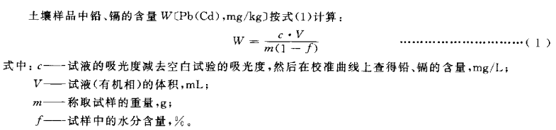 上壤樣品中鉛、鎘的含量WPb(Cd),mg/kg)按式(1)計算: