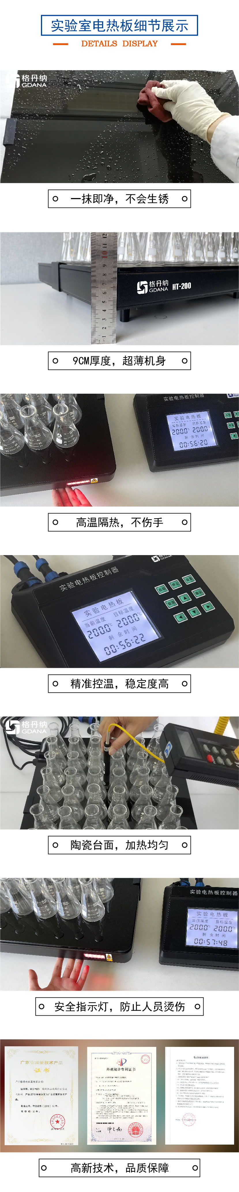 2.加熱板整體都采用進(jìn)口材料做成它耐磨損,壽命長,表面光滑易清潔,就像玻璃一樣用布一擦就可以很干凈。