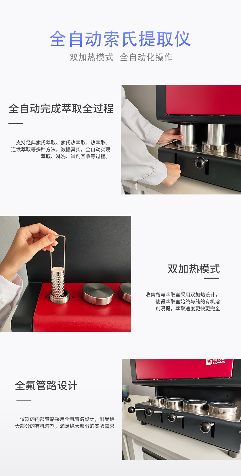 ?實(shí)現(xiàn)全程熱浸泡萃取,收集瓶與萃取室雙加熱,萃取速度快,比傳統(tǒng)索氏提取法縮短20%~80%提取時(shí)間