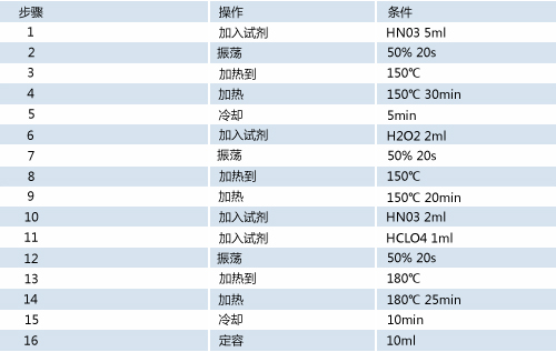 濃硝酸(MERK優(yōu)級(jí)純)、雙氧水(GR)和高氯酸(GR);銅、鎘、鉻、鋅4種重金屬元素標(biāo)準(zhǔn)溶液 (100mg/L)。