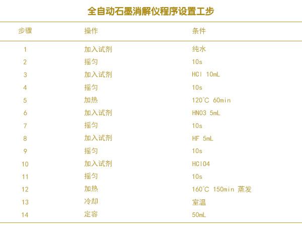 儀器:火焰原子分光光度計、石墨爐原子吸收分光光度計、全自動石墨消解儀、陶瓷加熱板。