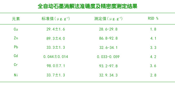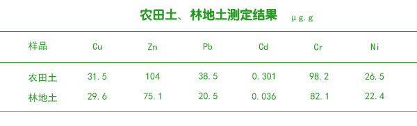 采用全自動消解方法對農(nóng)地土壤、林地土壤進行消解分析,每個樣品平行測定3份,測定數(shù)據(jù)見下面表格。從表可以看出實驗結果滿意。
