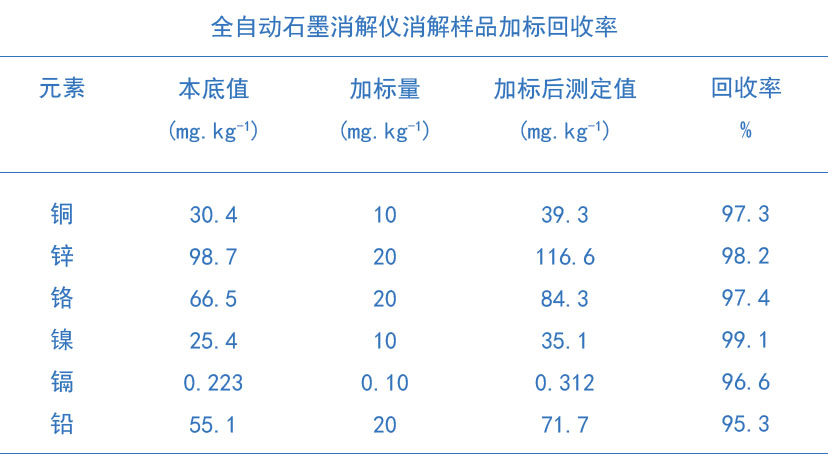 格丹納全自動石墨消解儀對土壤樣品消解方法加標(biāo)測定回收率結(jié)果如下表: